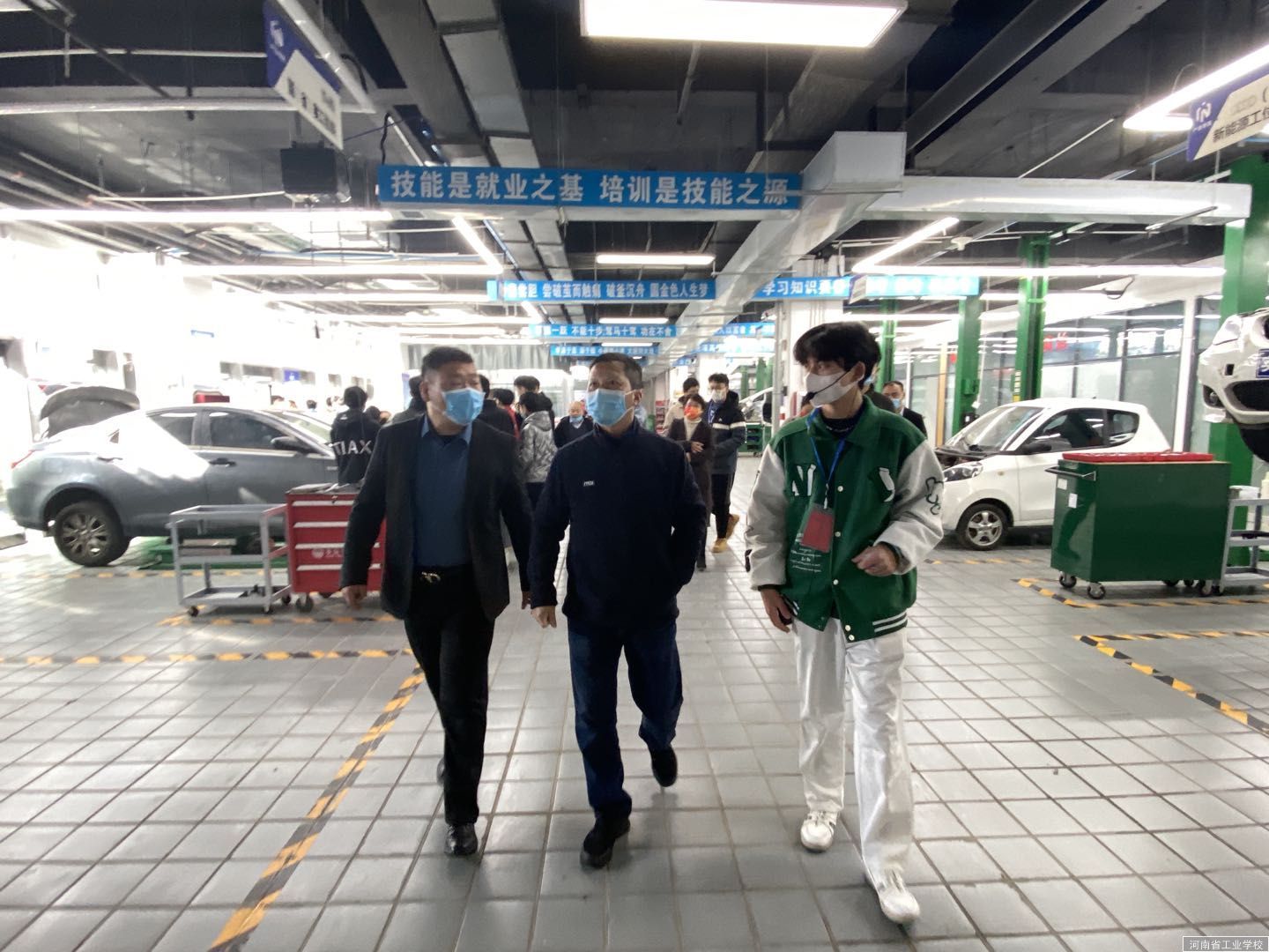 根据学校的统一安排,2021年11月25日,我校赴郑州市航空港区新能源汽车产业学院视察学生日常学习生活情况,本次视察任务由我校周伦钢副校长、机电工程系周自斌主任、机电工程系孙晓红书记带领,20汽修级1班、20汽修级2班、20新能源班班主任也一同来到产业学院看望学生。考察活动受到了河南鑫诺教育集团有限公司唐阳忠总经理,新能源汽车产业学院执行院长李宏杰的热烈欢迎,并全程陪同大家视察了我校学生的学习生活情况。