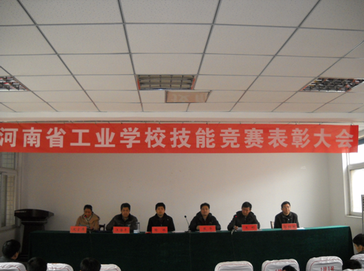 表彰会上首先展示了2012年河南省中等职业教育学生素质能力大赛我校获奖选手苏靖辉同学的参赛作品。教务处主任陶林宣读了《河南省工业学校关于表彰2012年度在河南省中等职业教育素质能力大赛获奖者的决定》(豫工校教字〔2012〕55号),教务处副主任汪海平宣读了《河南省工业学校关于表彰2012年第六届校内学生技能竞赛获奖者的决定》(豫工校教字〔2012〕54号),学校领导为获奖师生颁发了证书、奖金、奖品,并合影留念。基础部辅导教师陈丹丹代表辅导教师发言,省级素质大赛一等奖获奖者经管系学生周小燕代表参赛学生发言。