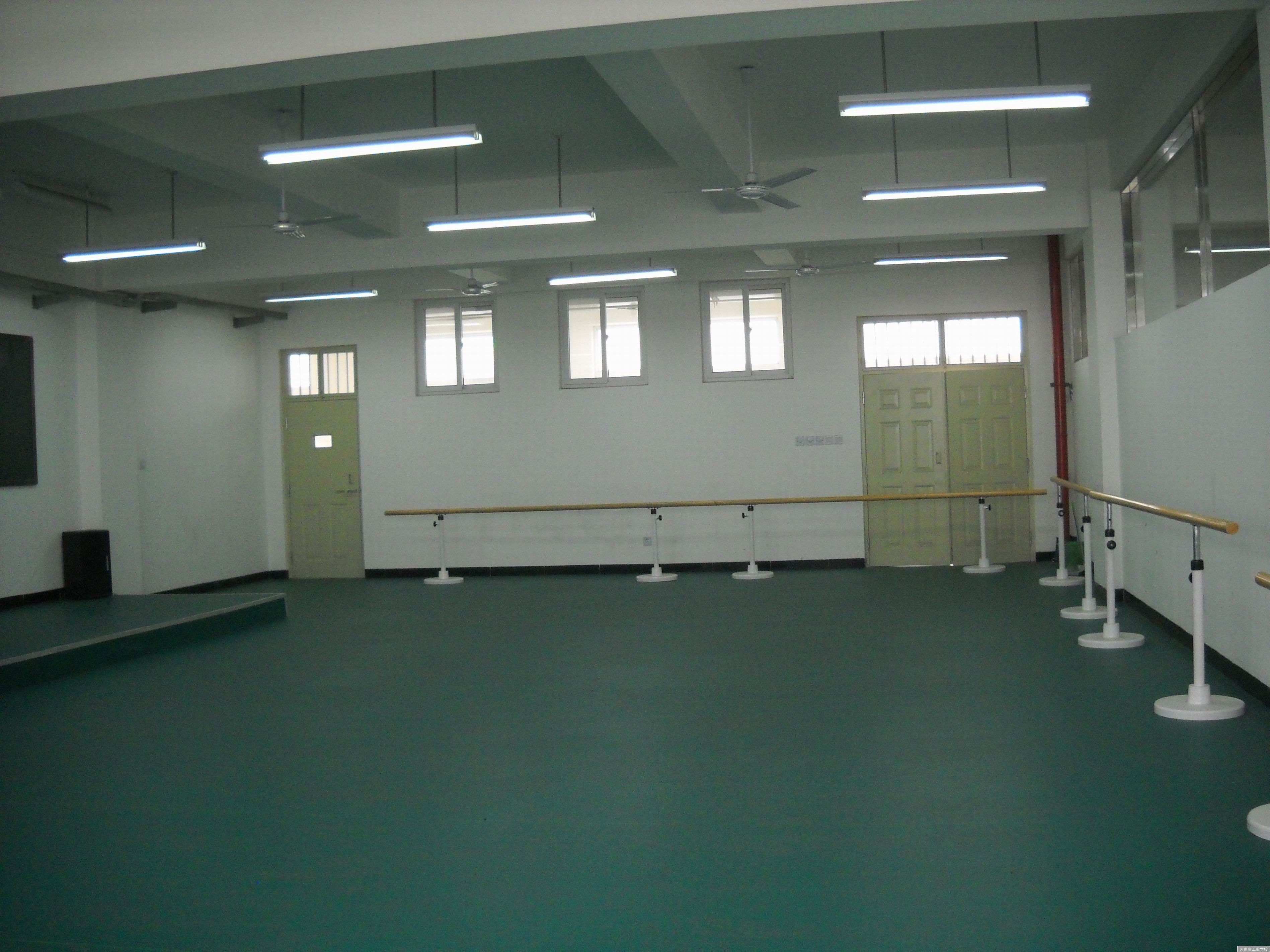 为改善我校体育教学条件,解决恶劣天气条件下体育课教学问题,探索、推广更广泛的体育教学内容,推进体育课教学改革,加强体育课教学管理,今年秋季,我校投入十多万元建起了三个体育教室,其中一个是体操房,另外两个是包含乒乓球、台球及健身器材的教室。体育教室的位置在实训楼五楼,其中501教室作为乒乓球教室,室内器械包括乒乓球台和数台健身器材,502教室作为学生体操房,用作体操相关教学,503教室安放了乒乓球、台球等设施,用作学生训练等教学场所。