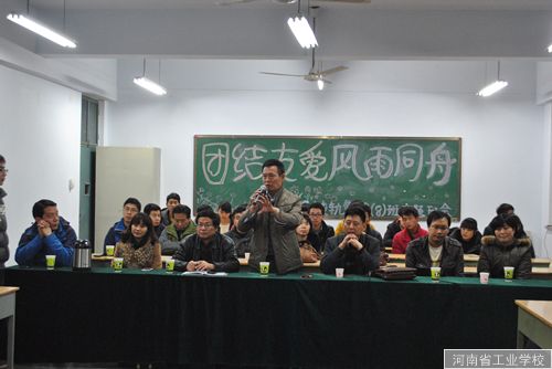 2013年11月26日晚,在教学楼209教室,13城轨管理(8)班举办了以“团结友爱 风雨同舟”为主题的主题班会。学校副校长王彬、党办主任杨宏涛、学生科长王龙泉、副科长冯家诚,材料系毛志刚主任,经管系杨青琳书记,基础部王建伟主任及各系部班主任、学生代表参加了本次主题班会。