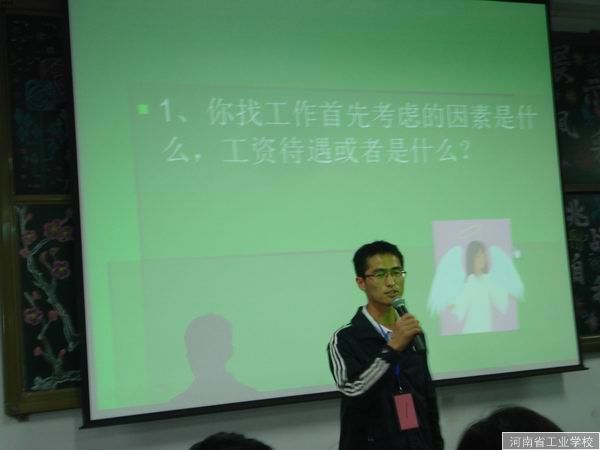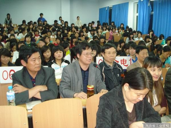2009年5月14日晚,模拟招聘决赛在教学楼108室正式拉开帷幕。本次大赛很荣幸的邀请到资深人力专家人事科科长周银环科长、经管系主任王荣琴主任、离退休科熊民庆科长、校团委书记杨青琳书记、就业指导老师尚建军、徐发山老师、招生办刘豫飞老师为大赛评委。当晚出席的嘉宾还有张安朝校长、王彬副校长、学生科王龙泉科长及基础部王建伟主任、学生科冯家诚副科长等相关领导以及经管系全体班主任。大会吸引了众多的学生,座无虚席。