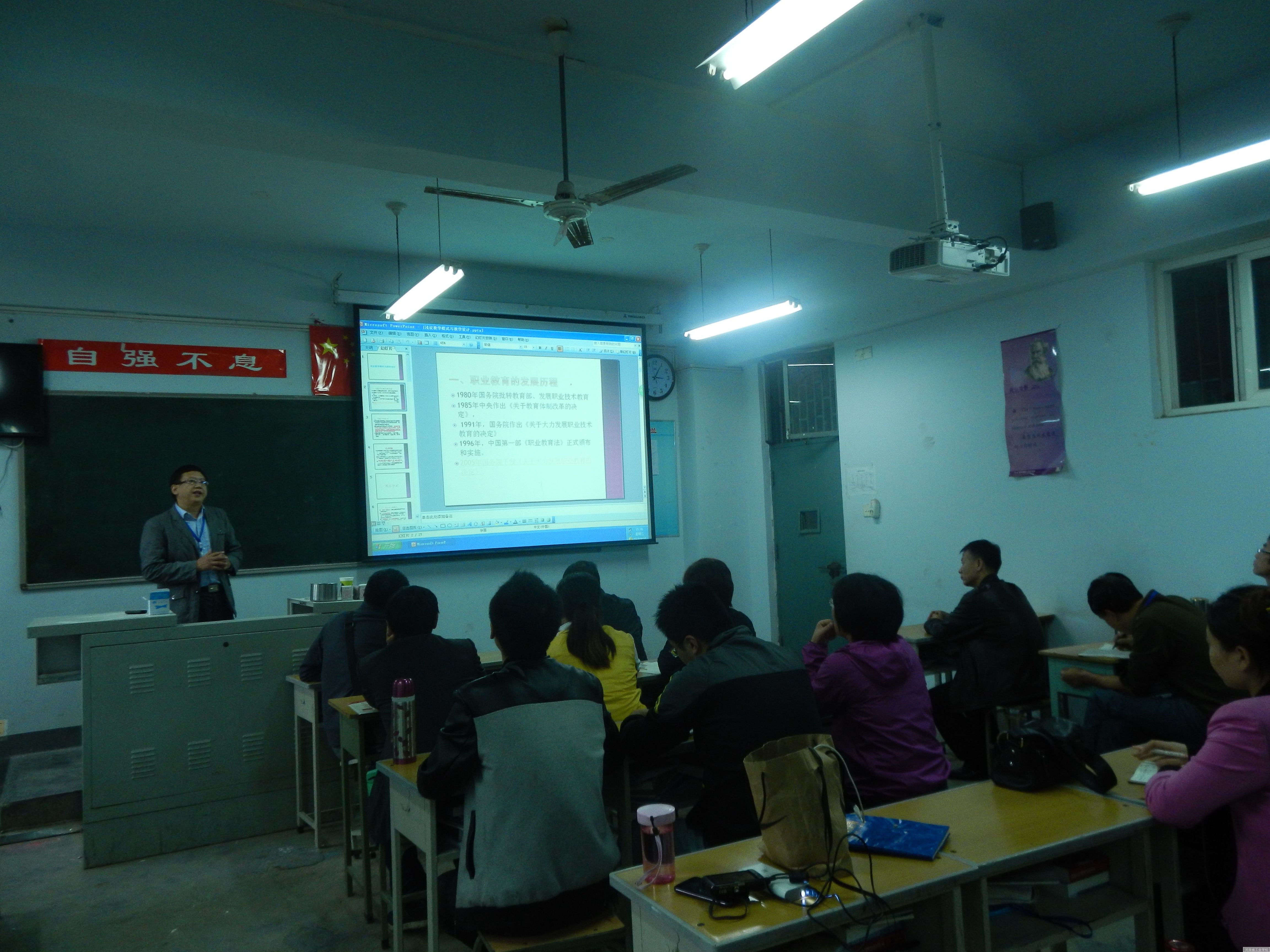 培训讲座中郭绍彬科长用诙谐、风趣的语言,深入浅出地为大家介绍了职业教育改革的历程和概念,重点从个方面介绍了教学模式的类型、要素,现代主要教学模式和常见具体教学方法、教学设计;并以游戏设计为借鉴,向教师介绍了教学设计的一些原则和方法,对提高我系教师教育能力、教学模式和教学方法改革提供了示范和参考。