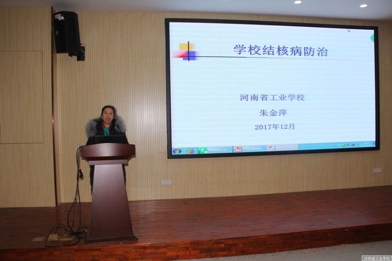 为了提高全校师生的结核病防治意识,普及结核病防治知识。 12月14日下午,河南省工业学校全体班主任教师在邓全副校长的带领下认真学习了有关结核病防控的相关知识。此次学习由总务科牵头,校医室朱金萍大夫负责讲解。讲解共分三个板块进行:一、结核病的传染,分别讲解了结核病的传染源、传播途径和易感人群;二、什么是结核病,讲解了结核病的症状以及出现疑似症状该怎么办;三、结核病的预防,讲解了锻炼身体,增强自身抵抗力的重要性,以及学校要做好学生的体检和消杀工作,杜绝结核病的传染源。