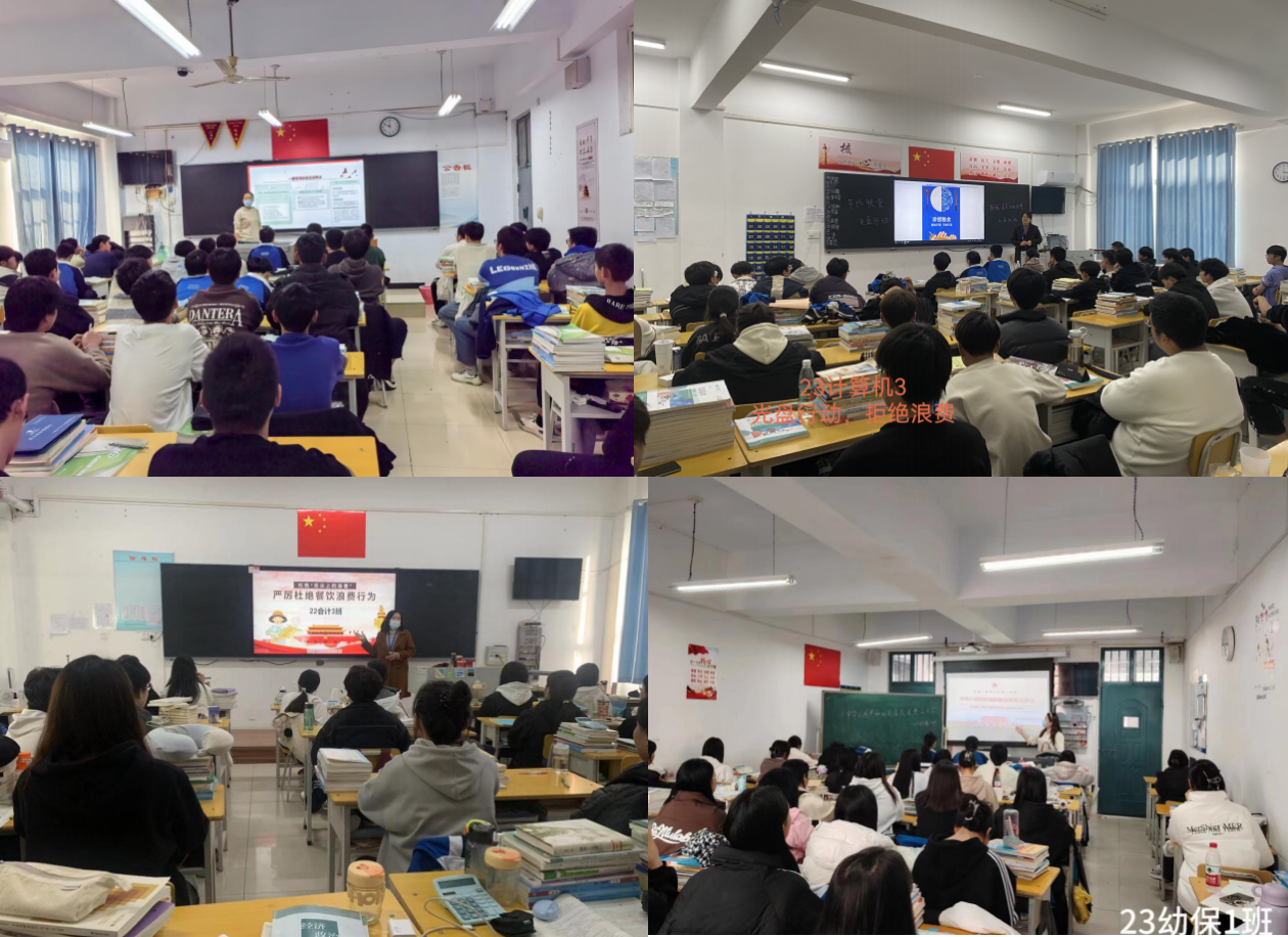 11月21日下午14:30,伙食科与校团委组织各系部班主任在班级教室面向全体在校学生开展了学习《中华人民共和国反食品浪费法》的主题班会活动。