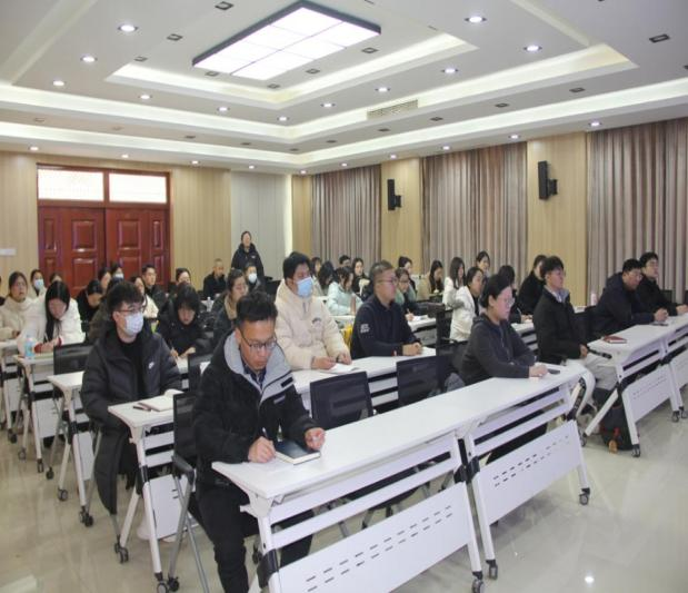 教务科科长毛志刚为新进教师介绍了职校教师与普通高校教师的差异性,并为新进教师讲授职校教学方面的专业知识,优化教师专业水平。