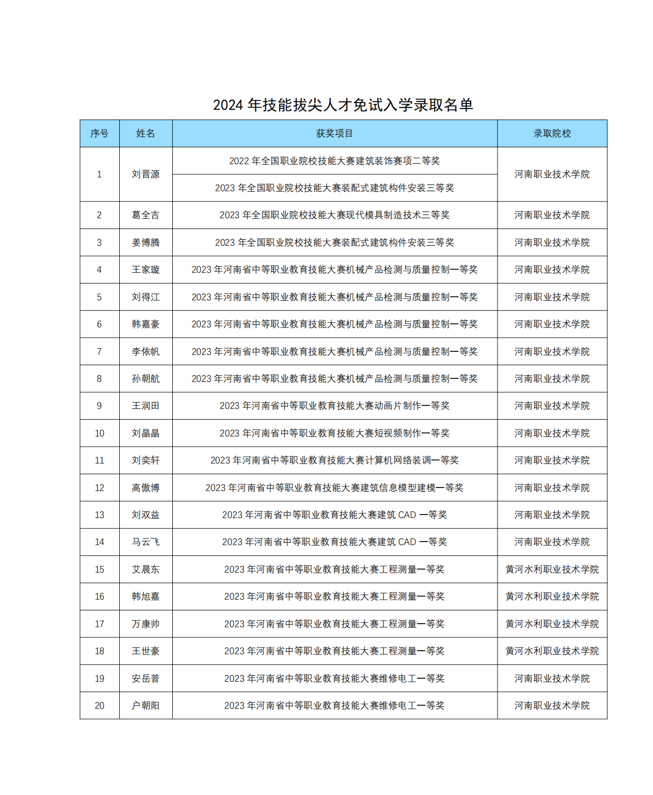 技能创造未来,大赛点亮人生。我校2021级学生在全国职业院校、河南省中等职业教育技能大赛中取得优异成绩。根据河南省教育厅《关于做好2024年高等职业教育单独考试招生和技能拔尖人才免试入学工作的通知》(教学〔2024〕58号)要求,我校获得全国职业院校技能大赛三等奖及以上和省级技能大赛一等奖的39名学生取得高职院校免试入学资格,提前被高职院校录取,成为“准大学生”。