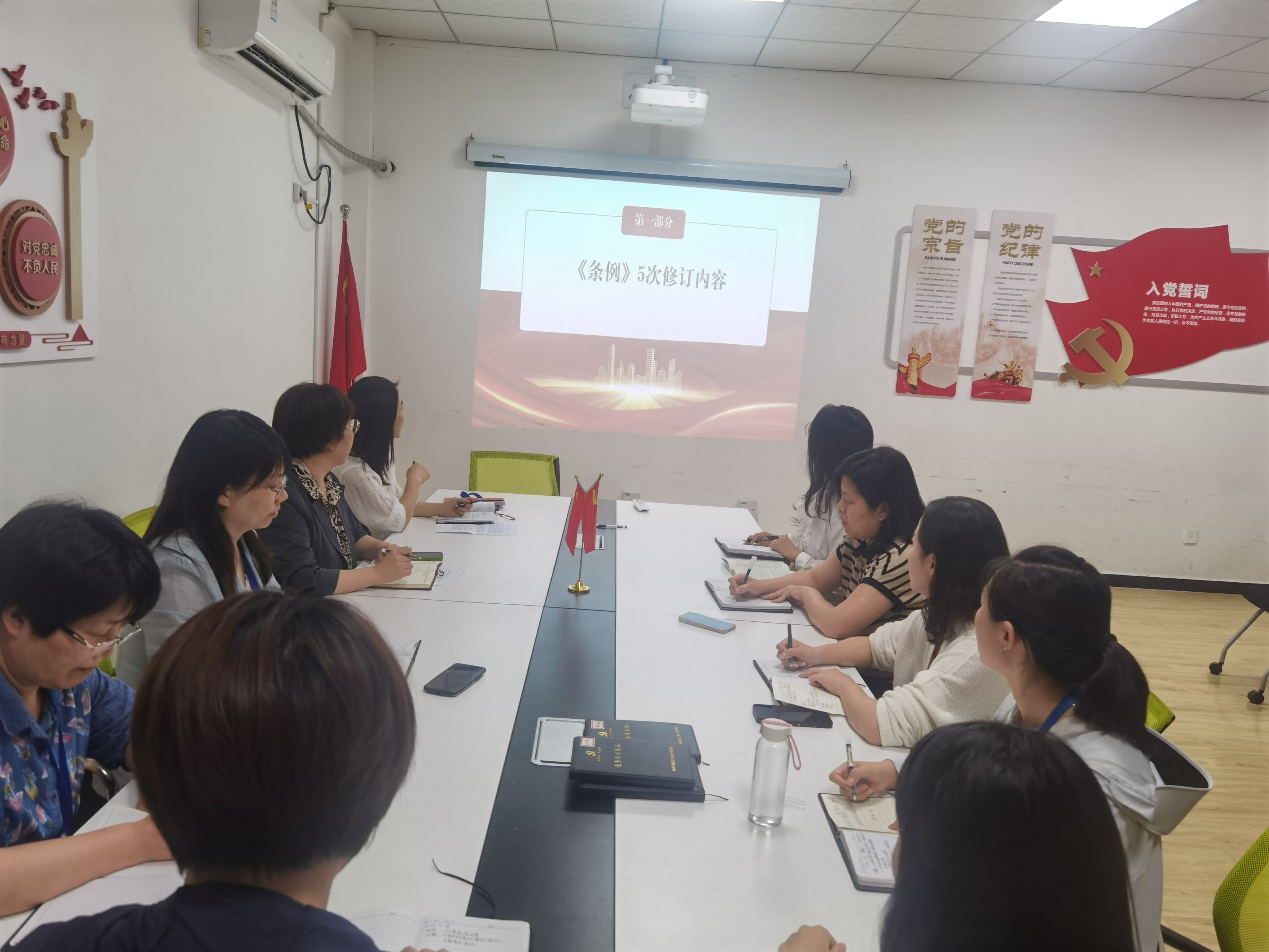 宣传委员王巧玲领学了《条例》第八章廉洁纪律和第九章群众纪律的内容。孙晓红副校长围绕“为什么要学习党纪、如何学好用好党纪”,同全体党员进行了深入交流。