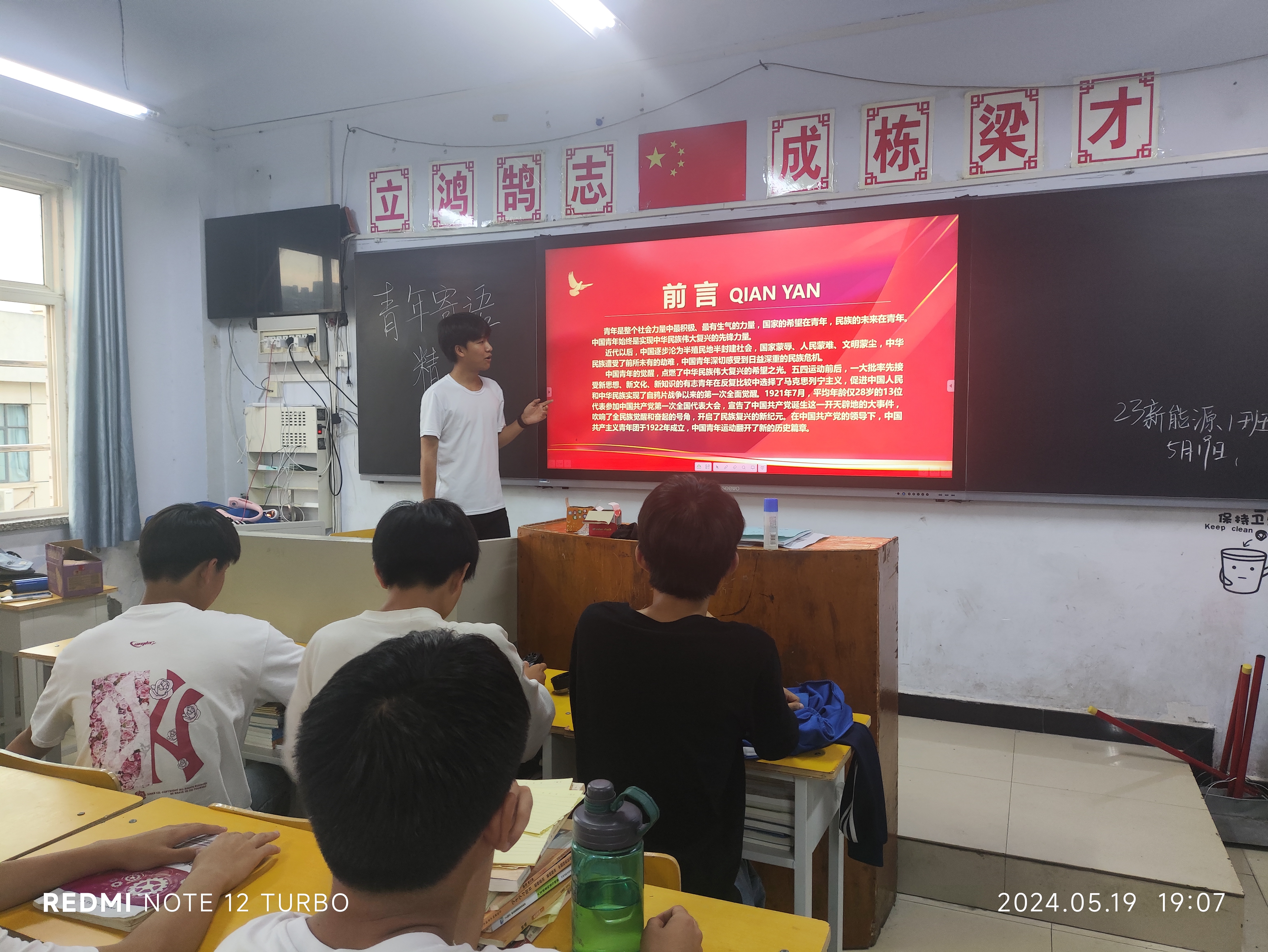 为进一步弘扬五四精神,引导广大青年学生赓续红色血脉、勇担时代重任,5月19日晚,我校各团支部开展了主题为“新时代的中国青年”团日活动,专题学习习近平总书记五四青年节对全国广大青年寄语。