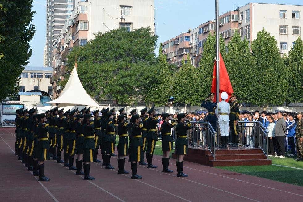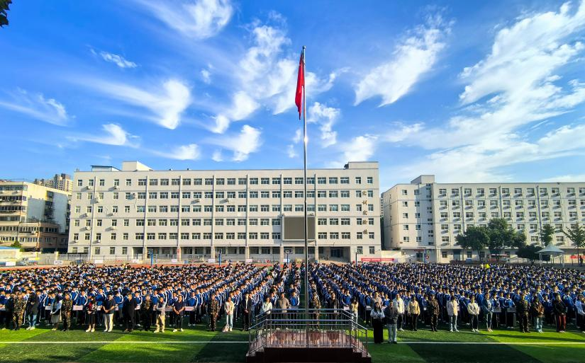 典礼在雄壮的国歌声中拉开序幕,全体师生肃立,注视着鲜艳的五星红旗在晨曦中缓缓升起,表达着对祖国的深深敬意与热爱。这一刻,不仅是对国家的礼赞,更是对新生们开启新旅程的美好祝愿。