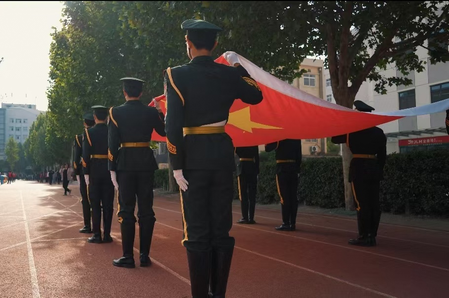 上午8:30,国旗护卫队迈着铿锵的步伐庄严入场,鲜艳的五星红旗在阳光下熠熠生辉,它像流动的画卷诉说着少年意气和家国情怀,像嘹亮的号角为运动会奏响了激昂的序曲。承载梦想的花环队、激发斗志的彩旗队、代表着公平正义的裁判员队及教职工代表队、各班级代表队紧随其后相继入场,一群不同身份、不同年龄的身影在此刻凝聚成了同一个圆心,只为共赴一场关于拼搏、团结与成长的隆重盛会。