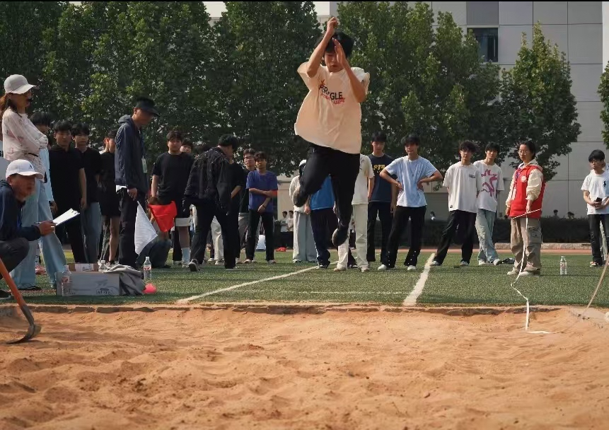 上午10:00,学生运动项目正式拉开战幕。本届运动会学生组共设个人项目14项,集体项目5项。从速度与爆发力的百米冲刺,到技巧与耐力并重的跳远投掷,全方位考验着选手的竞技水平。随着第一声枪响,跑道瞬间化作青春的战场,选手们如离弦之箭弹射而出,摆臂、加速、冲刺一气呵成;跳远沙坑前,选手们如展翅欲飞的海燕,助力、腾空、落地,轻松的一跃在空中划出了道道美丽的弧线。集体项目更是将赛场氛围推向高潮,接力赛的默契交接、跳大绳的整齐律动,使加油声、呐喊声瞬间汇成了激昂的浪潮。运动员们用汗水诠释拼搏,用坚持书写热血,将青春的活力与竞技的魅力展现得淋漓尽致。