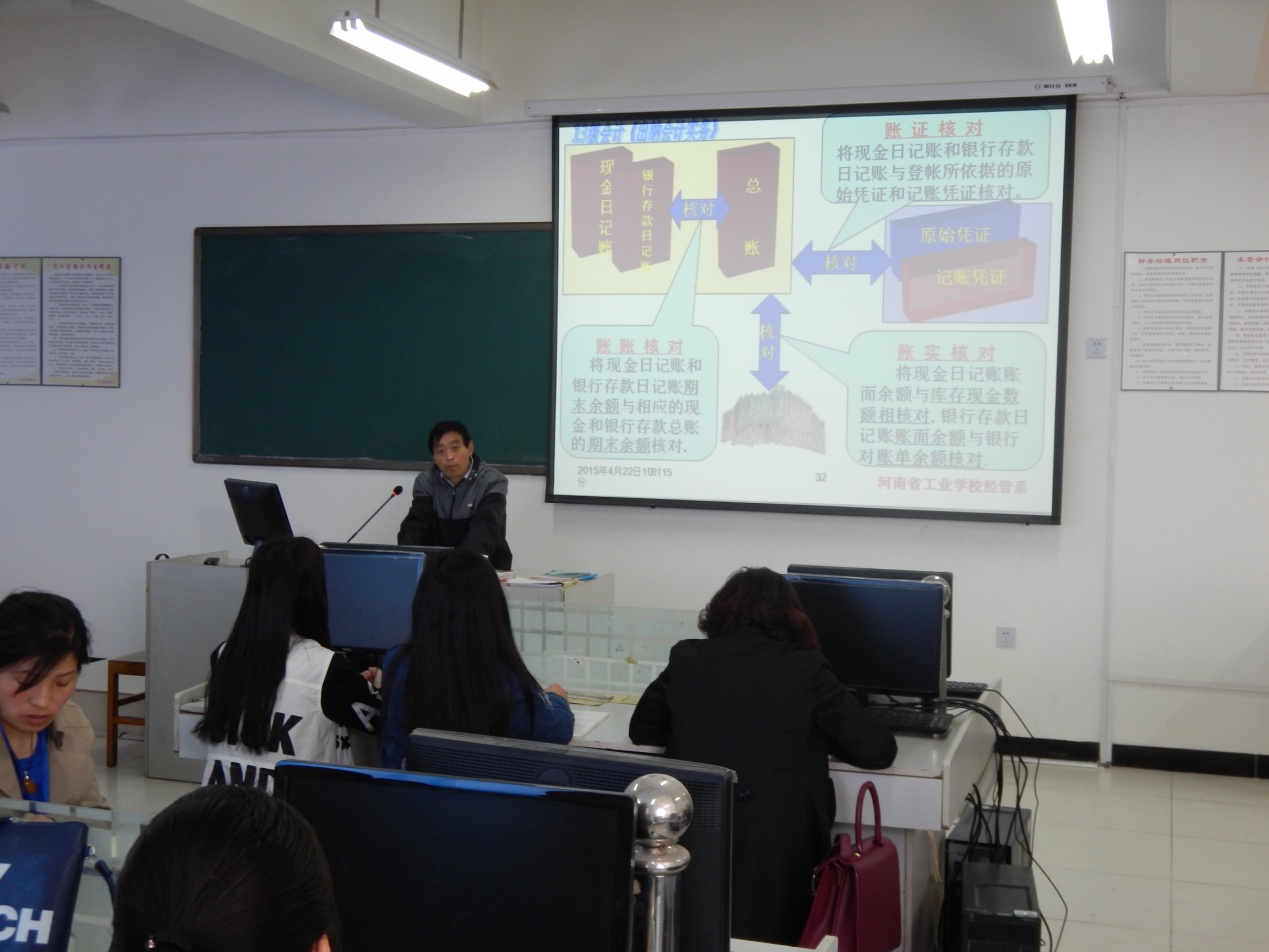 为提高教师职业技能,促进我系教师间的互相交流和学习,进一步提高教育教学质量,2015年3月27日、4月22日,尚建军和徐双印老师分别为经管系教师上了一堂公开课,教学班级为14城轨1班和13会计班。课堂气氛轻松活泼,学生积极参与教学,师生互动良好,取得了很好的教学效果。