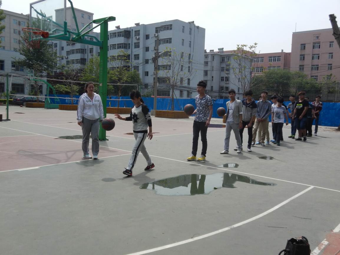 为了推进体育课堂教学,提高体育教学质量,经过精心设计,认真准备,2015年5月8日上午第3节课,基础部张花卉老师在篮球场上上了一堂《行进间运球》公开课,全体基础部老师现场观摩与指导。