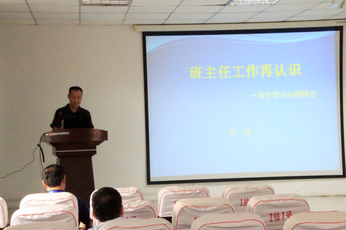 今年暑期,宋科、韩阳、曹睿齐、秦齐、谭志勇等五位教师作为我校本年度的优秀班主任代表参加了由《职业》杂志社在西宁举办的“职业学校班主任工作交流会”。宋科作为代表在本次大讲堂作了题为“班主任工作再认识”的典型发言。