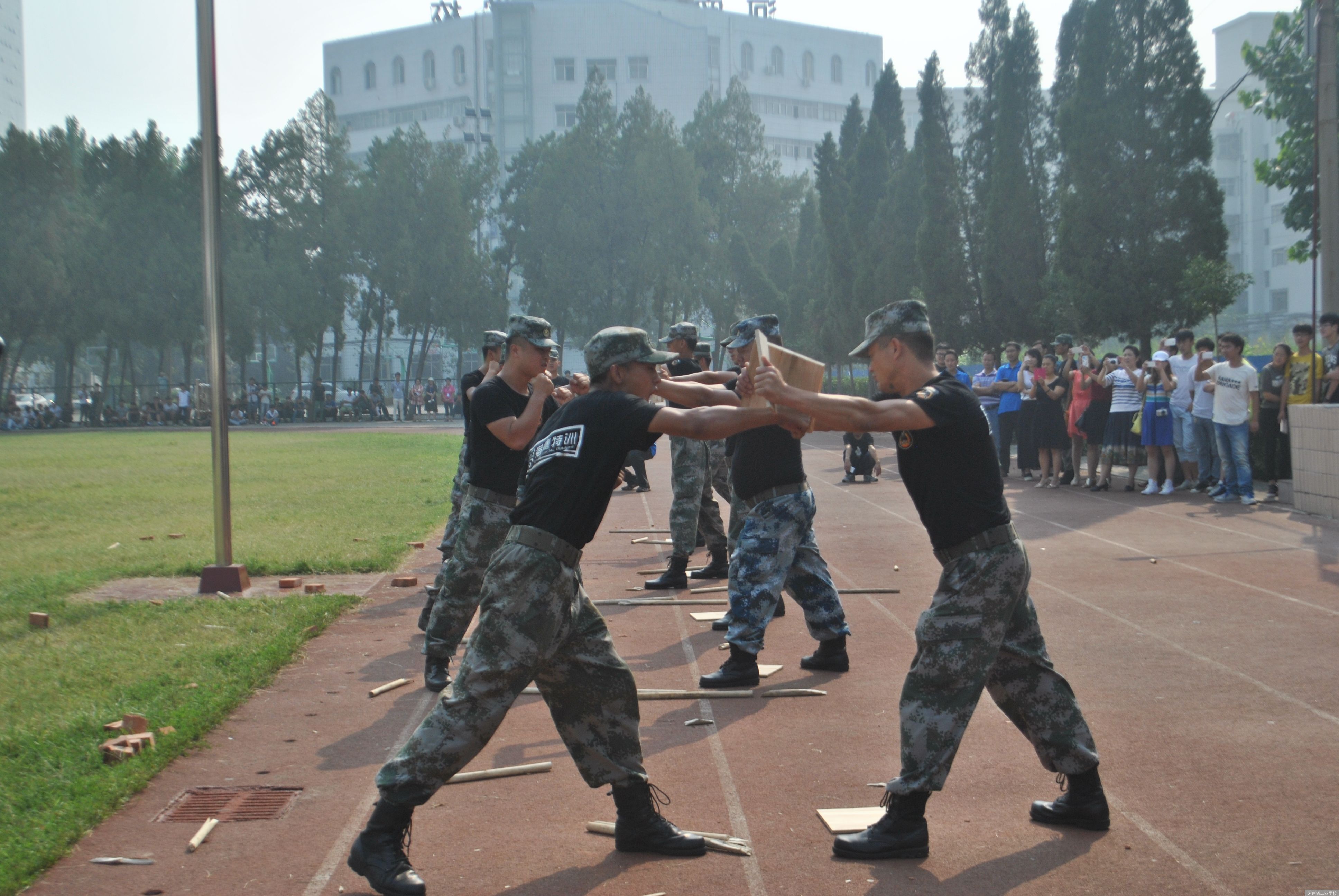 在学校领导的殷切关怀和军训小组的直接领导下,经过班主任的严格管理和猎鹰特训大队教官的仔细、精心训练,历时15天的新生军训工作于2015年8月28日顺利结束。本次军训除了基本的队列训练外,着重加强了内务整理的训练,内务质量方面和以往军训相比有了大幅度的提升。为了丰富学生的军训生活,训练中间还穿插了消防、防震疏散演习、学唱军歌及拉歌比赛等,此外,学校还专门请抗美援朝老战士作报告,对学生进行爱国主义传统教育。在军训汇报表演大会上,参训学生展示了队列训练成果、进行了内务方面叠军被表演,军训教官们进行了军体拳、棍术、徒手断砖等精彩表演。在最后的总结大会上还对获得拉歌评比、宿舍评比、队列评比前六名的班级和35名军训积极分子进行了表彰,颁发了奖旗和证书,并对先进个人颁发了奖品。王彬副校长代表学校领导向参与这次军训工作的班主任、教官表示衷心的感谢,希望广大新生能够一如既往地保持军训成果。