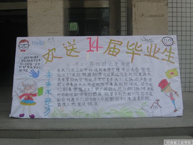 手工制作的宣传板,既表达了对即将离校实习的同学们深深的祝福,也表达了母校对同学们的关心、不舍和激励。