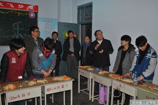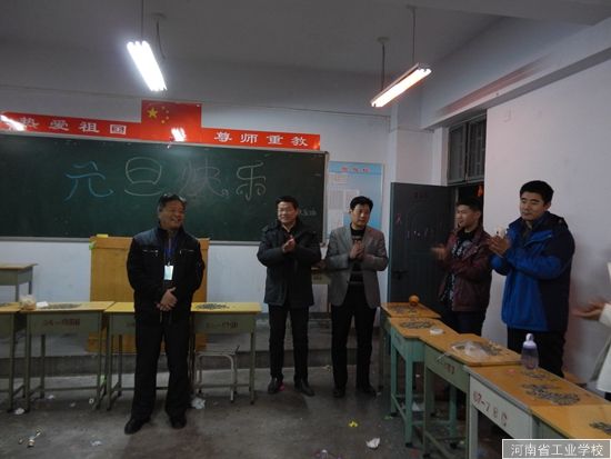晚7点半,张华校长、范吉钰书记、王彬副校长、邓全主席分别来到各班级看望老师和同学们,并给大家送上了新年的祝福。