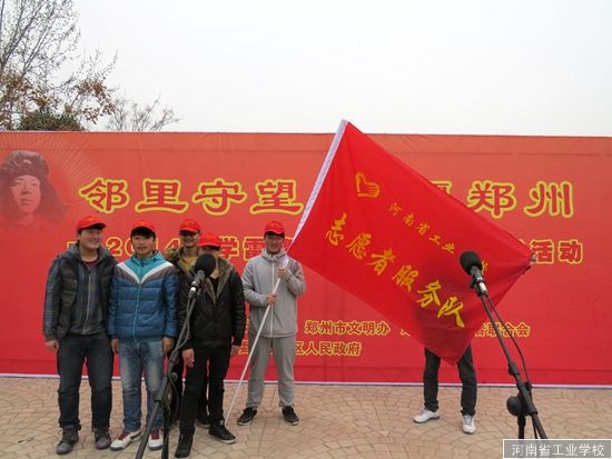 3月5日,我校学雷锋志愿者代表一行五十余人在杨晓瑞老师的带领下,参加了郑州市金水区以“邻里守望 志愿郑州”为主题的2014年学雷锋志愿服务活动启动仪式。