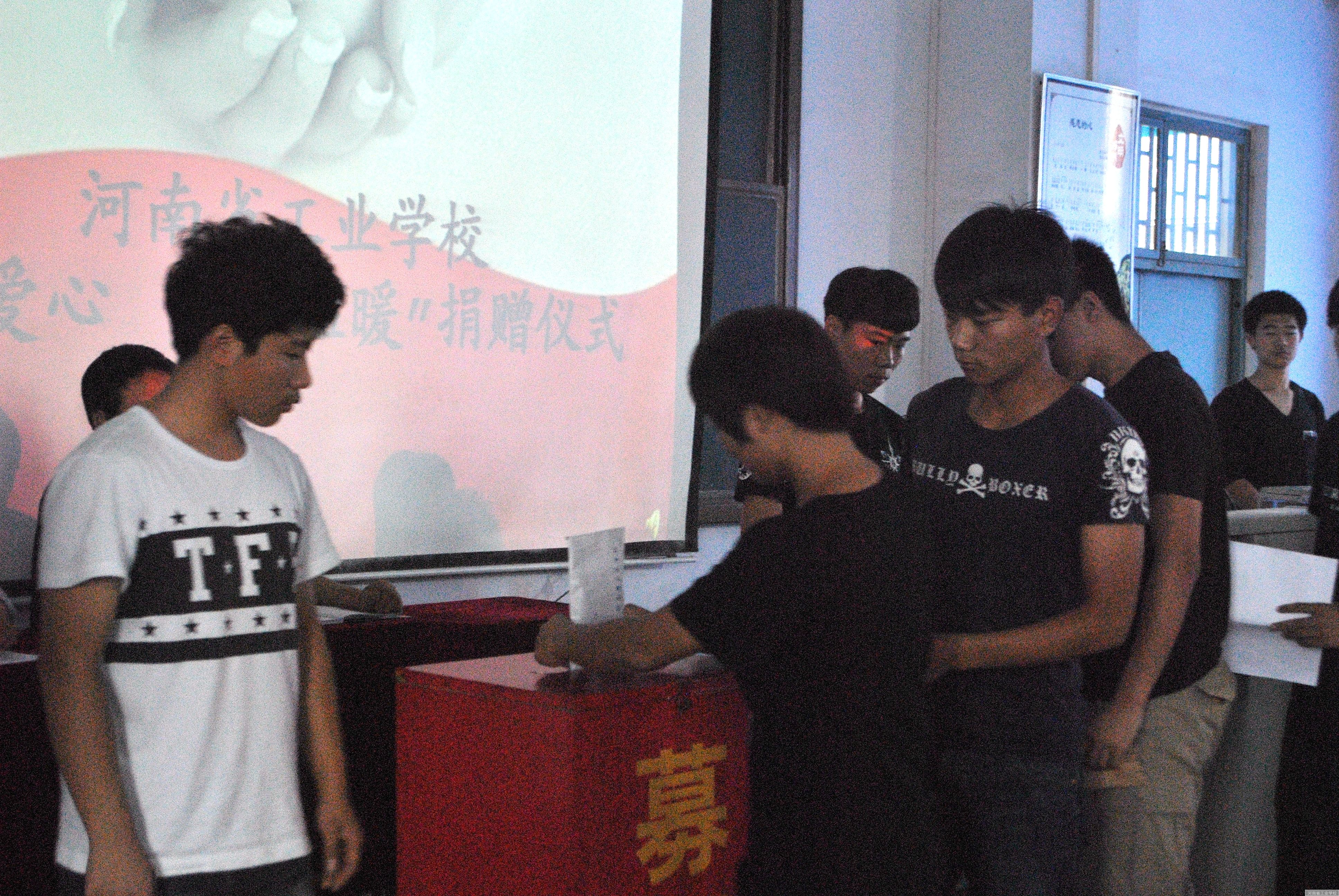 9月25日下午4点,我校“献爱心 送温暖”捐款仪式在208教室举行,学生科王龙泉科长、校团委冯家诚副书记参加了仪式。