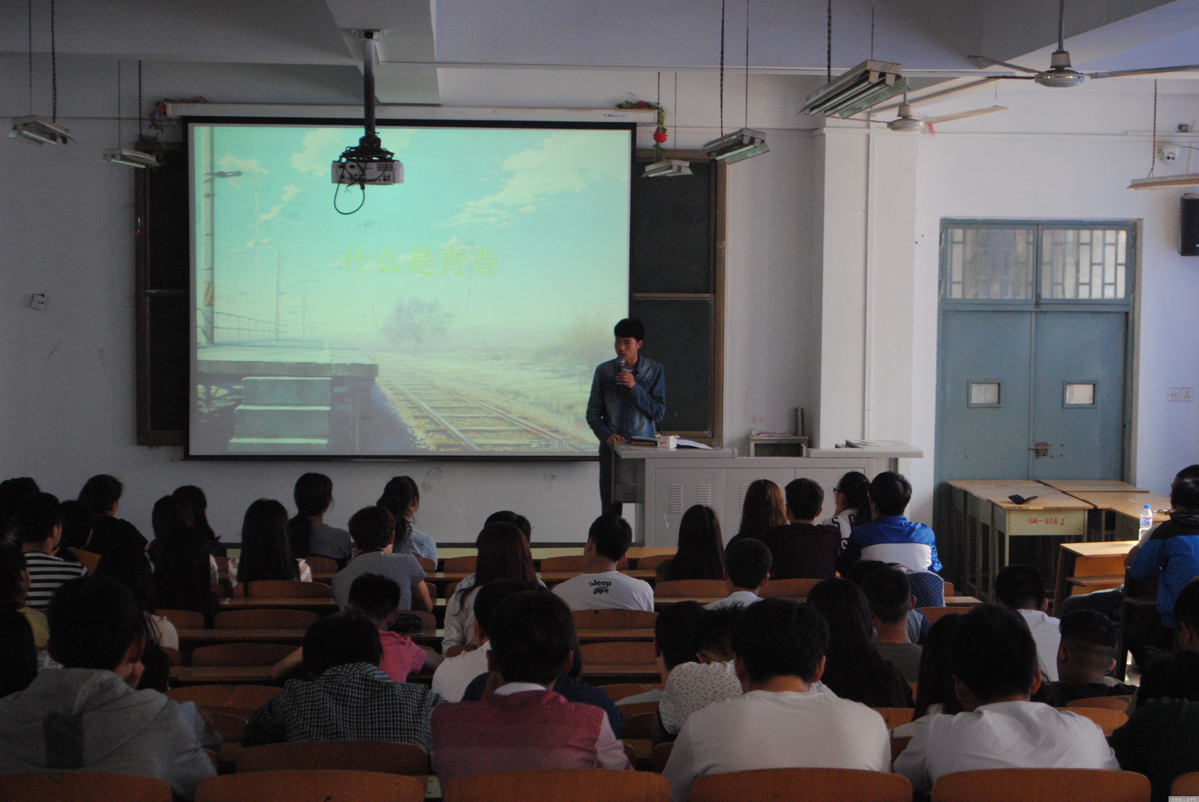 在讲堂的互动环节,14城轨14班王璐同学、14城轨8班尚峪等同学分别谈了自己的看法,最后,13建筑3班余耀强同学倾情献唱,现场气氛活跃。