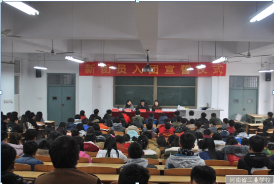 大会伴随着激昂的团歌拉开了序幕,首先由学生科李悦副科长宣读了发展新团员决定的文件,接着由老团员为新团员发放了团徽,并由新团员们亲手佩戴在自己胸前,佩戴在每一位新团员胸前的团徽,是共青团肩负重任的标志,共青团员给每一位新团员颁发团徽是对每一位新团员的信任,也给新团员们提出了要求,它要求每一位团员努力学习积极向上,充分发挥团员模范带头作用,我们每个团员从佩戴上团徽的这一刻起,就要认清自己肩负的责任,努力履行团员的义务,用实际行动来证明自己无悔于“共青团员”这个光荣的称号。