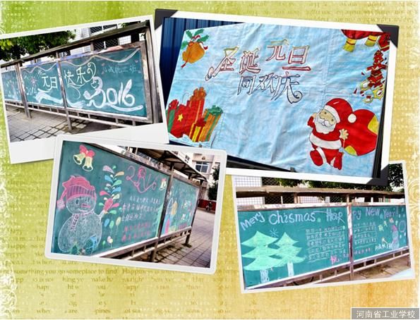 为了烘托节日气氛,美化校园环境,校团委宣传部和部分班级制作了以迎新年为主题的宣传海报和宣传黑板。
