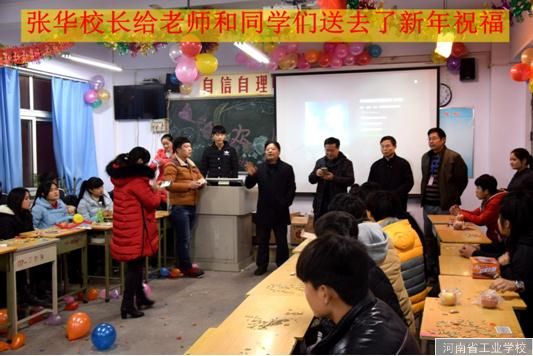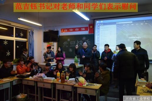 学校领导张华校长、范吉钰书记、王彬副校长分别带领学生科、校团委和各系部的负责人,到各班级教室内参与了同学们的联欢活动,并对同学们送上了新年的祝福和节日的慰问,也对同学们新的一年提出了希望和期许。