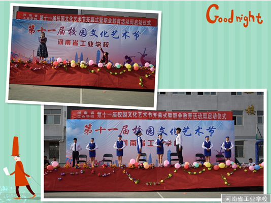 同时,本次艺术节开幕式也是我校“职业教育活动周”的启动仪式, “职业教育活动周”的设立,目的是要在全社会弘扬劳动光荣、技能宝贵、创造伟大的时代风尚,形成“崇尚一技之长、不唯学历凭能力”的良好氛围。做为河南省管理强校和文化示范校,我们更要坚持以提高质量、促进就业、服务发展为导向,推动职业教育发展实现新跨越,进一步培养形成高素质的复合型技能人才。