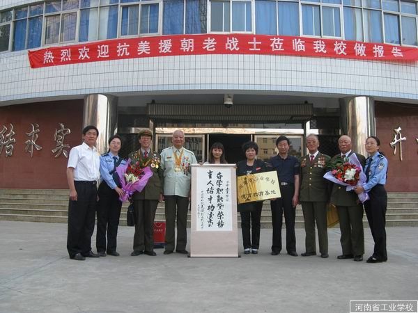 5月7日下午,我校特邀请贾福林(黄继光团原团长)、张瑞明、邢玉堂、贺兴栋四位当年参加过抗美援朝战争并立过赫赫战功的老战士到我校做报告,一起随同的还有东风路派出所的几名民警同志。3点钟,校长张安朝、校党委书记李玉霞、副校长王彬及相关科室负责人和我们的老战士在我校会议室进行了近半个小时的亲切座谈。3点半,报告会正式开始,张安朝校长参加了报告会并做了重要讲话,王彬副校长主持会议。