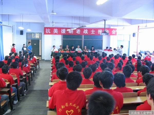 3点30分,当老战士迈着矫健的步伐走进报告厅时,同学们全体起立报以热烈的掌声欢迎老战士的到来。紧接着报告会在中华人民共和国的国歌声中拉开帷幕。报告会上,几位老战士分别回顾了他们当年在朝鲜战场上与敌人浴血奋战、殊死搏斗的场景,讲述了战争的残酷与艰苦,讲述了黄继光、孙占元、邱少云等英雄人物的事迹,讲述了我们曾听过以及从未听过的一个个感人故事,我们的老战士在讲述的过程中,经常是语言哽咽,泣不成声,台下的同学们也不时的热泪盈眶,并对他们的英雄行为不时报以热烈的掌声。之后张安朝校长发表了讲话, 他首先对老战士们所做的精彩而生动的报告表示了感谢,并说这次报告会不仅给我们的学生进行了一次很好的革命传统教育,对我们的老师也是一次很好的激励,他希望同学们在今后的学习工作中,不忘老战士们艰苦奋斗、不怕牺牲的精神,不忘我们生活的来之不易,艰苦奋斗、勤俭节约,珍惜现在的美好生活,为了我们国家的更加繁荣强大努力奋斗。紧接着,学生代表也代表全体学生发言,表示将继续发扬革命英雄主义精神,肩负起历史赋予的神圣使命,努力学习、艰苦奋斗,在实现中华民族伟大复兴的历史征程中谱写更加辉煌的篇章。最后,学校领导与老战士互赠了匾牌和字幅,并一同共唱《中国人民志愿军战歌》。6点钟,整个报告会在中国人民志愿军的战歌声中结束。