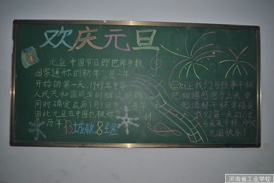 此次黑板报创作制作水平较高,不仅有利于培养同学们的想象力、创造力,也为学校增添了浓厚的“庆元旦、迎新年”的喜庆气氛。